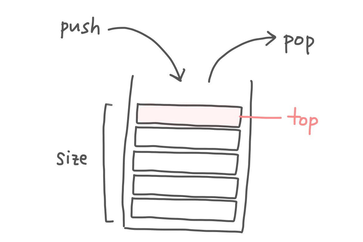 스택(Stack)은 번역하면 '쌓다'라는 뜻이다. 뷔페에 가면 쌓여있는 접시들을 떠올려보면 이해하기 쉽다. 접시를 새로 쌓을 때는 맨 위에 올려놓고, 가져갈 때도 맨 위부터 가지고 가야한다. 이렇게 가장 마지막에 쌓인 데이터부터 가져갈 수 있고, 새로 저장할 때도 가장 마지막 부분에 쌓아야하는 데이터 구조를 '스택(Stack)' 이라고 한다. 스택 구조는 자료가 들어오고 나가는 입구가 딱 한 곳이고, 한 번에 하나의 데이터만 처리할 수 있다. 후입선출(LIFO, Last In First Out) 방식이라고 줄여부를 수도 있다.