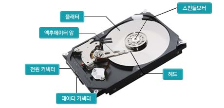 하드디스크(HDD)는 TB 단위까지 나올 정도로 용량이 훨씬 커서(물론 속도는 그만큼 낮다) 컴퓨터의 프로그램들이나 훨씬 많은 데이터들을 보관한다. 뿐만 아니라 RAM이 포화상태 일 때, 당장 사용하지 않아도 되는, 우선순위가 낮은 데이터들을 '가상 메모리'라는 곳에 임시로 보관해주기도 한다.